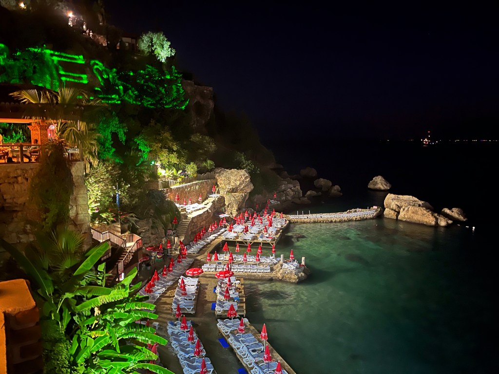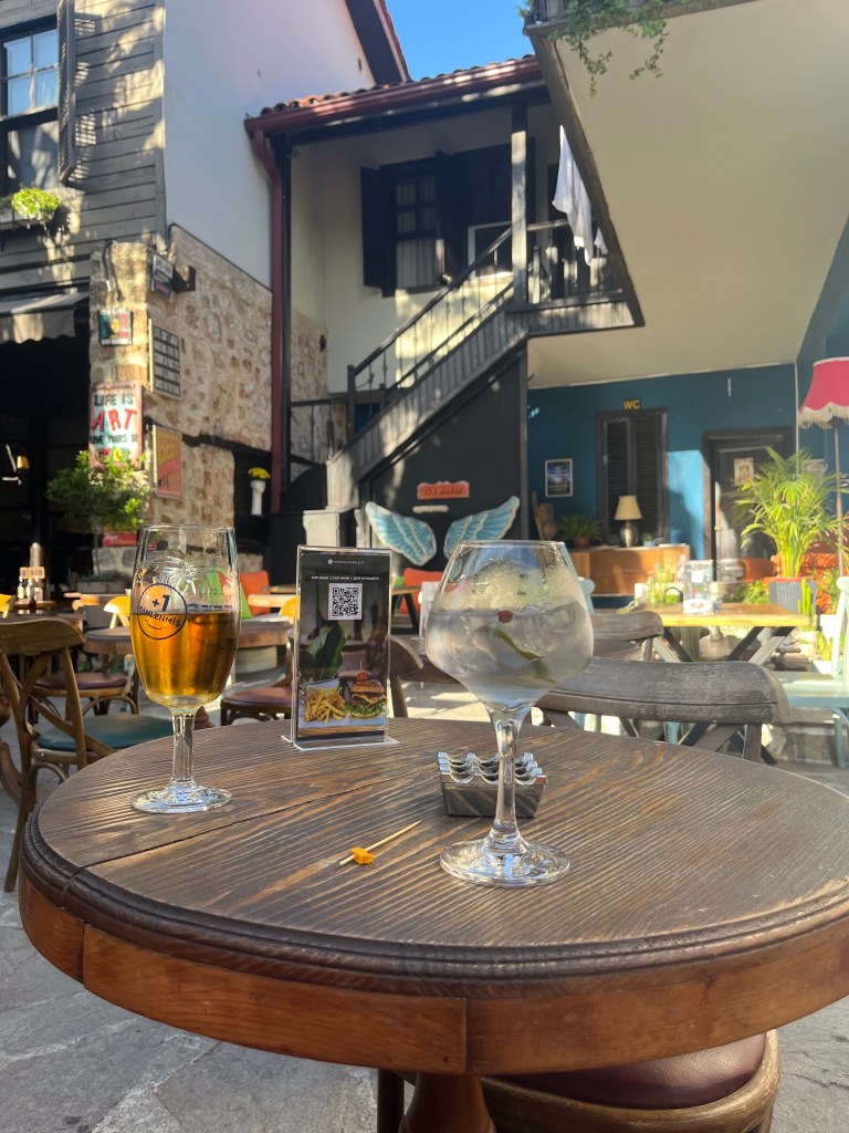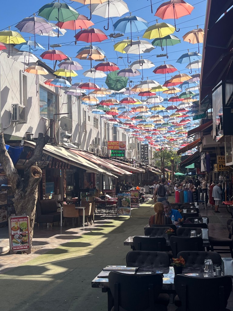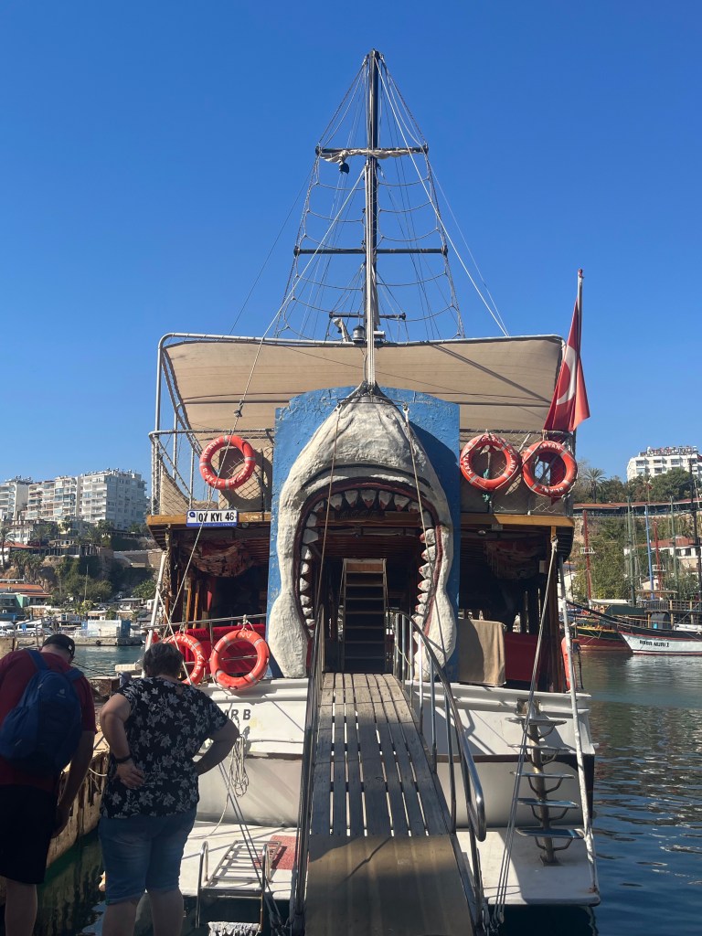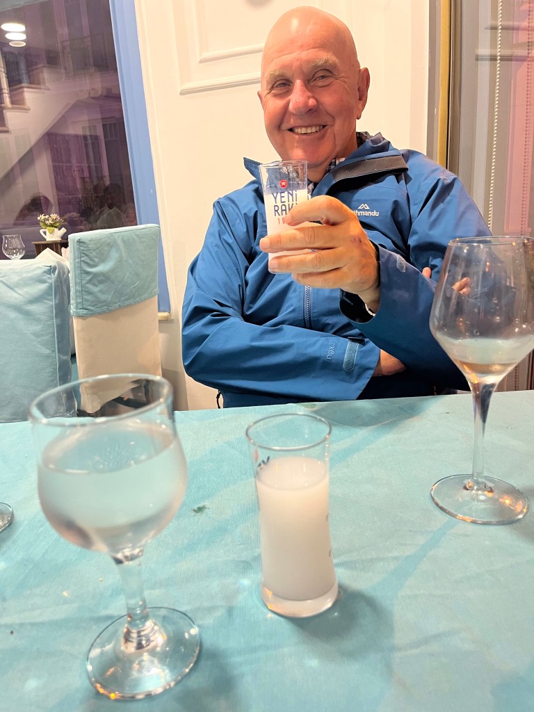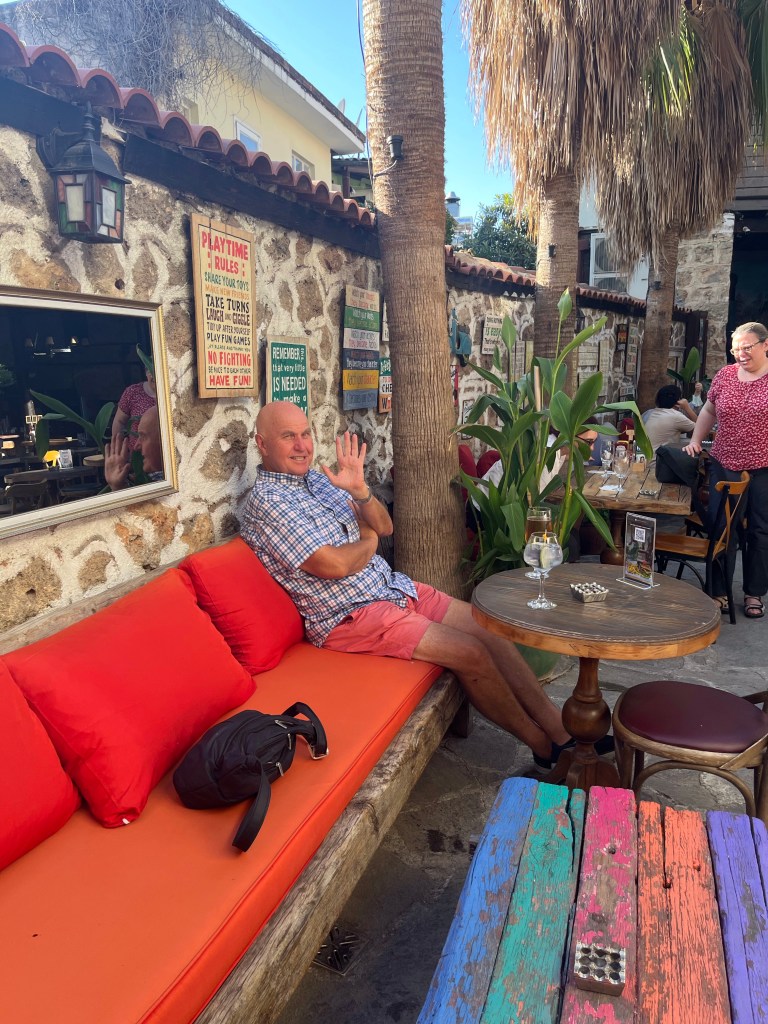 We finally gave in an had dinner at a restaurant that we had passed at least twice a day every day. The man had asked us every time to come and eat there, so we finally did and it was a good meal. I had lamb chops and they were excellent, tender, tasty and moist. After finishing off a bottle of wine we decided to try the local raki which we had seen everywhere. It’s really the Turkish ouzo and goes cloudy when water is added. We didn’t get around to trying a hooka pipe. We were going to but then found out that it is tobacco based and takes over an hour to smoke. We could find better things to do with an hour.