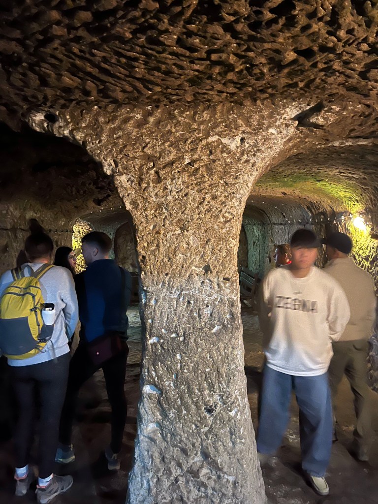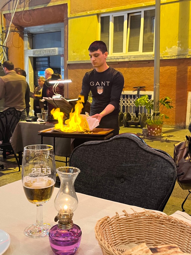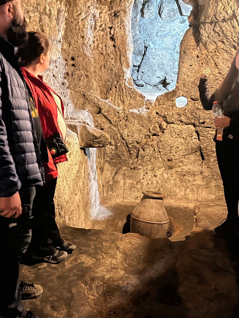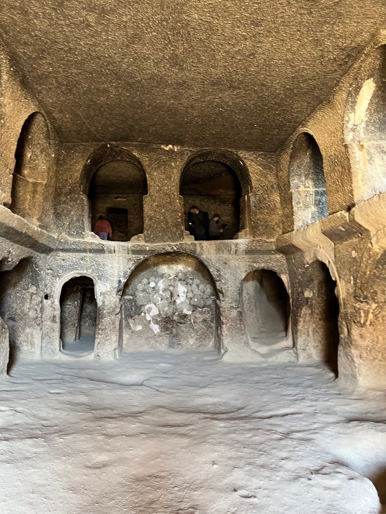 We found a reasonable restaurant for dinner and I ordered an Ottoman meal which was cooked in a clay pot. It’s a great ceremony to open it. The top is wrapped in a wet towel while to bottom is fired in a flame. Then it tapped around a fault line and the bottom falls off and the meal poured into a dish. It’s common to see all the empty pots piled up outside of the restaurants. I’m guessing they probably are not recycled. Nothing much seems to be recycled in Turkey but at lease the city has better rubbish collection than most of the country towns and villages.