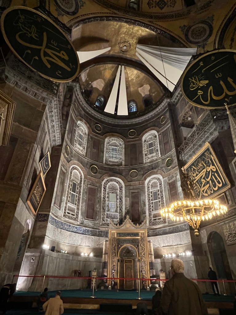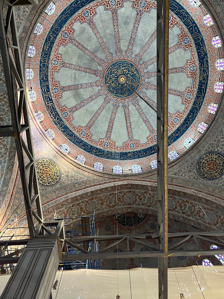 We then did an evening visit to Aya Sofya and were actually allowed inside while prayers were being held and once they were finished we were able to wander around most of the mosque. As the guide book says you need to bring binoculars to be able to see the mosaics in the dome but you certainly get the impressions of its opulence and size. There are so many mosques and so many big ones in the city. We did learn that there are around 3,500 in Istanbul alone. I’ve learnt from my visit to Turkey that they love a mosque, they love a wall, they love cats and dogs and they love tooting their horns. Not necessarily in any order.