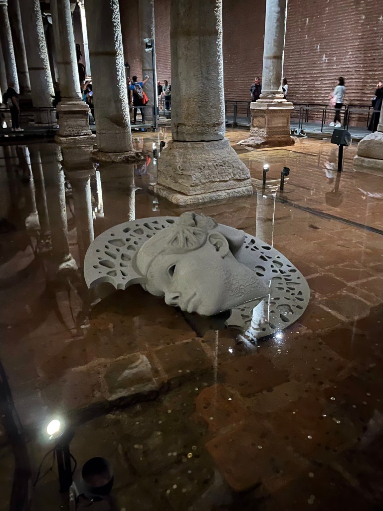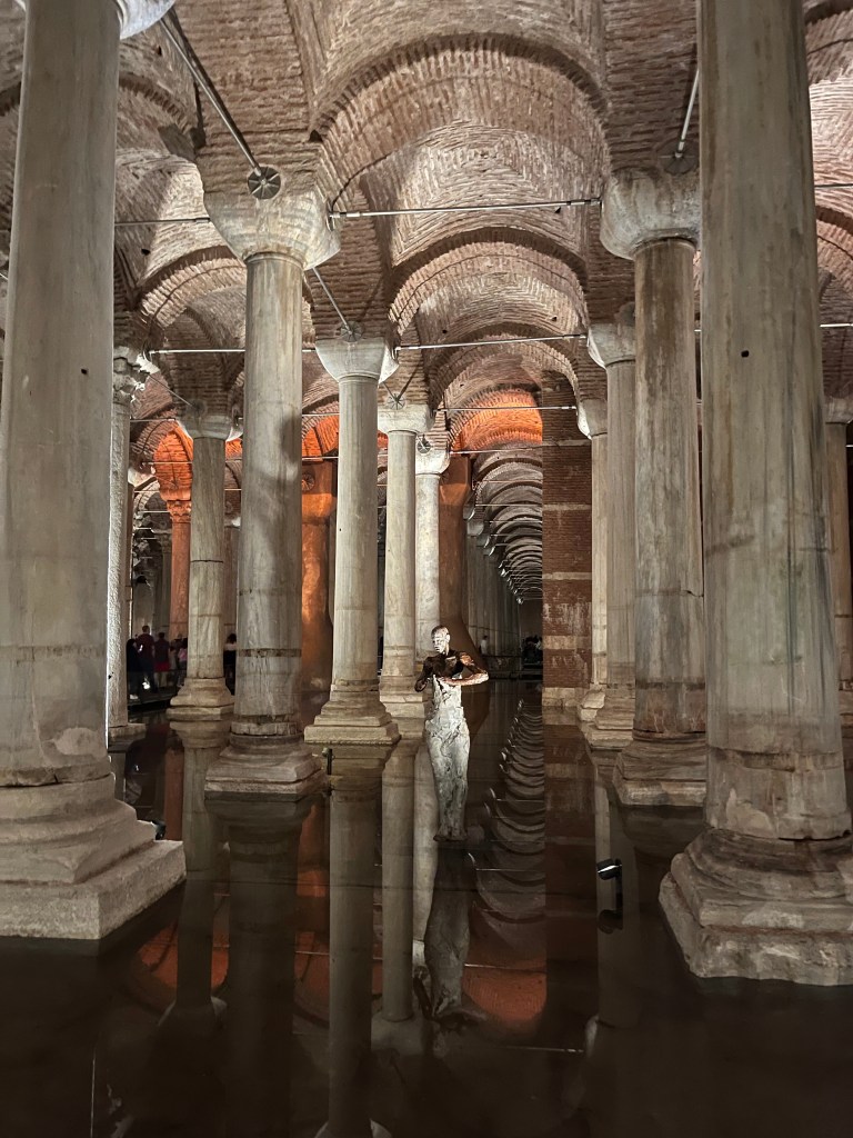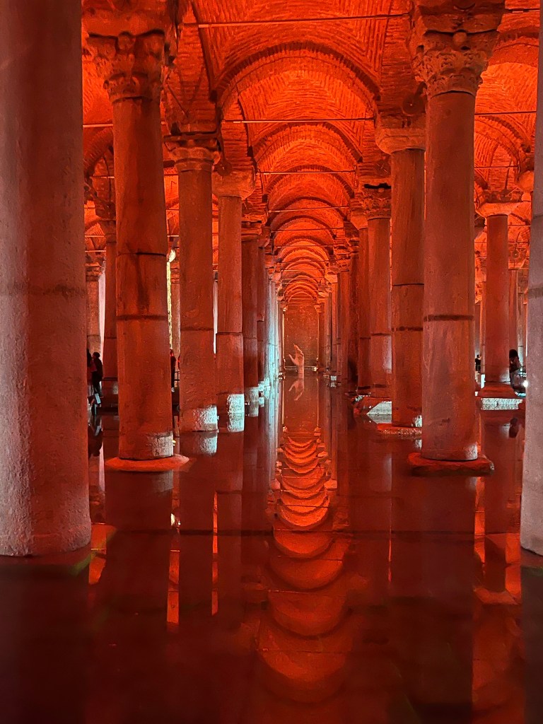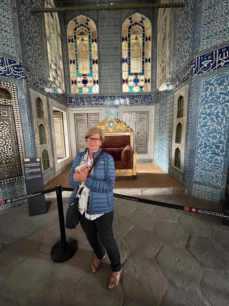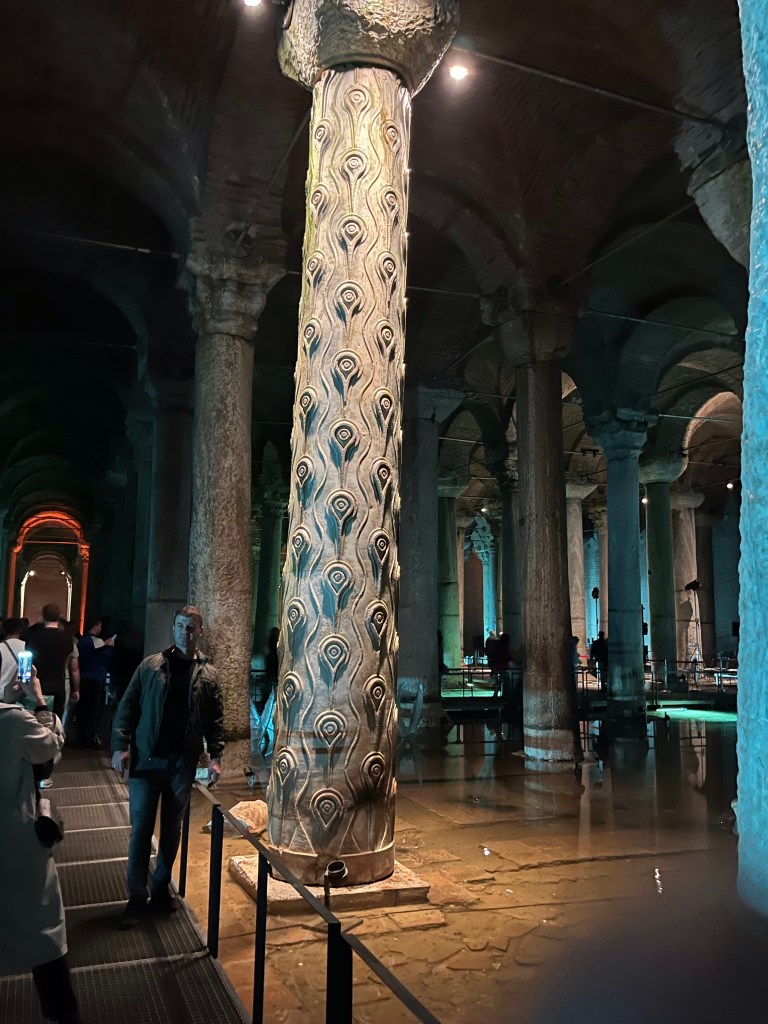We actually had a bit of a sleep in the next morning – until about 8am. I think we were still catching up on the early mornings in Cappadocia. It was then over to Topkapi palace to get there for the morning opening and beat the queues. It was the usual bedlam of men trying to sell us guided tours, perfume etc. we took our chances on doing it ourselves. Neither of us are good at listening to tour leaders prattling on and being forced to take 4-5 hours when we figured 3 would be enough. Of course it was the harem that was the most interesting and possibly the most restored and preserved. Such beautiful tiles and marbles and a very complex pecking order. Most of the concubines were brought in from other countries as the Sultans didn’t believe in enslaving their own people. Some were very young girls, far from home and with no chance of ever returning. Looking after them were the black and white eunuchs- segregated even way back when. The grounds and gardens were massive and take up a huge chunk of land in an otherwise very crowded city. In some ways there are some similarities to Sydney in that the harbour (Sydney), the Bosphorus (Istanbul) gives a feeling of space and airflow. After lunch we visited the Cisterns – very extensive and very interesting. Just amazing that all those centuries ago they worked out how to dig such a huge cavern under the city, build all the hundreds of supporting pillars and make it waterproof. Centuries before even a horse track had been formed in Australia.