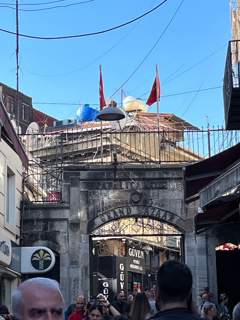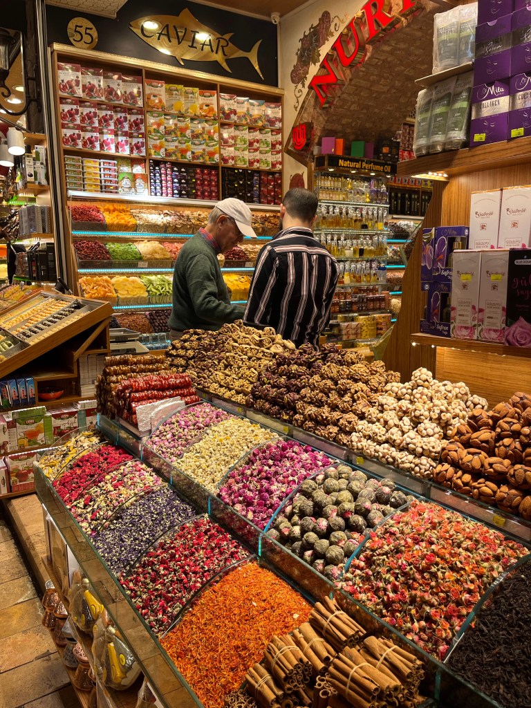On Tuesday we decided to hit the markets and do the shopping. As usual when trekking there is really no impulse to buy trinkets or momentos. The thought of carrying them or packing them is too much. We found our way to the grand bazaar and I was pleasantly surprised. I was expecting chaos and tight little laneways and a feeling of getting lost. I remembered Fez many years ago and needing a guide to get you in and certainly one to get you out but the bazaar was very well set out and clean and not too many people harassing us. We spent about an hour finding what we wanted and knowing that we were probably being ripped off and then followed our noses down the hill through more narrow lanes lined with shops to the spice market. In some ways we both liked this even better than the bazaar. Possibly because it’s so colourful and smells wonderful. We dropped all our purchases at home and then hit the trams and funicular to the other side of the water to see where the locals shop. It’s a long pedestrian road with only a single ancient tram going it’s length. There was absolutely no chance of fitting on it’s one tiny carriage so we walked. First stop was an exclusive cake and coffee shop where we had some amazing cakes/ puddings and some pretty good coffee. We were trying to find Galata tower but somehow missed it. There were quite a few shops selling prepared cooked meals for the people to take home after work and I did notice quite a few food delivery motorbikes. I found a potato shop that specialised in baked potatoes with a whole range of fillings to choose from. We walked over the Galata bridge which is a double decker bridge. Cars, tram and fishermen on top, seafood restaurants on the bottom layer.