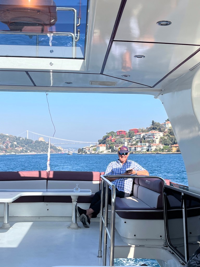 On Wednesday we decided to hit the water. We booked a trip on the Bosphorus and managed to find ourselves on a smallish boat with only a small group of about 15 people. Danny and I had the top deck mainly to ourselves. It was good to see the city from the water, passing many beautiful buildings – palaces, government buildings and school, luxury hotels, old castles and private residences many of which are old Ottoman houses with preservation orders and restrictions. There is no doubt Turkey is going a long way to restore its heritage. One of the drivers has to be tourism. It seems to be one of their largest industries.