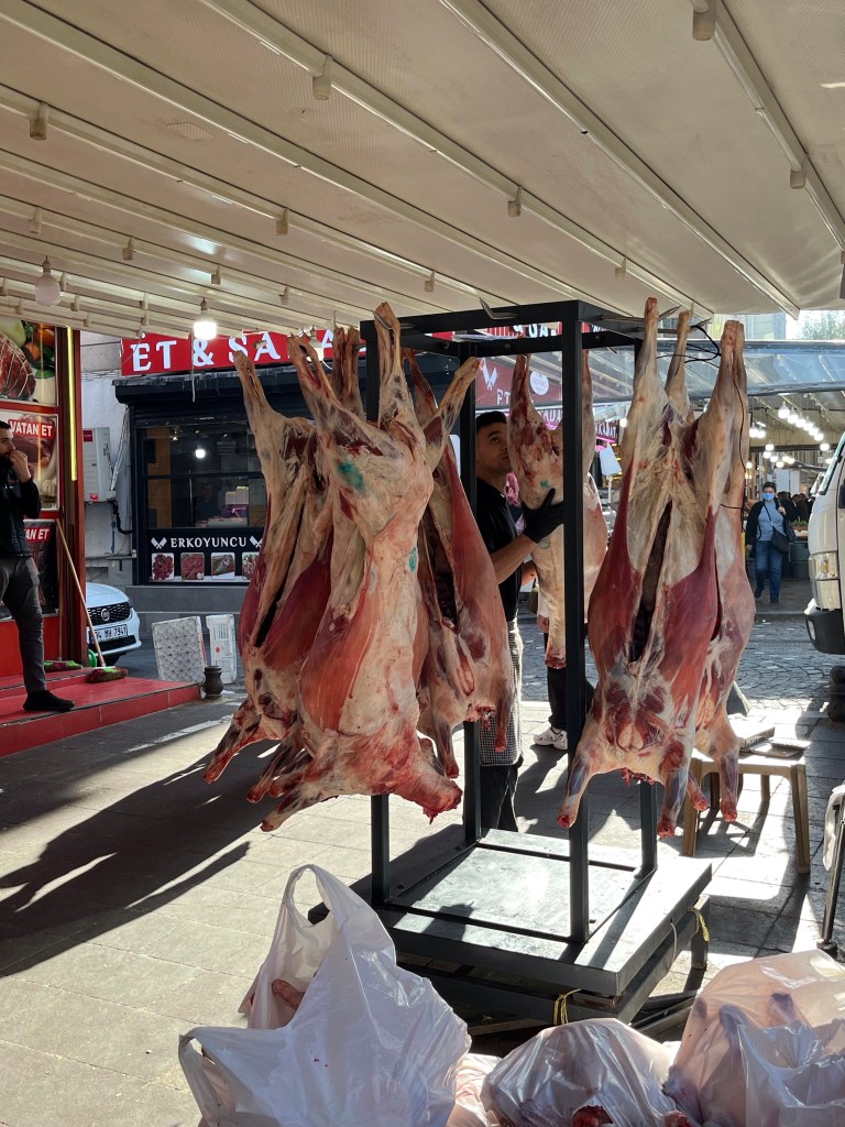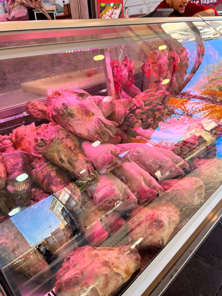 There were lots of sheep and goats heads, mostly skinned and lots of cows feet.. not any pig meat that I could see, but lots of offal of all descriptions especially tripe and intestines. Lots of things I really couldn’t identify and lots of awful smells. It was certainly an experience and I thought it interesting that even the local women were using their headscarves to cover their noses to enter some of the shops. At the second last shop we noticed a large cattle head displayed with his tongue hanging out. I would love to know how they prepared that for eating. It certainly would be an effort to carry it home.