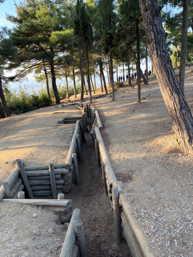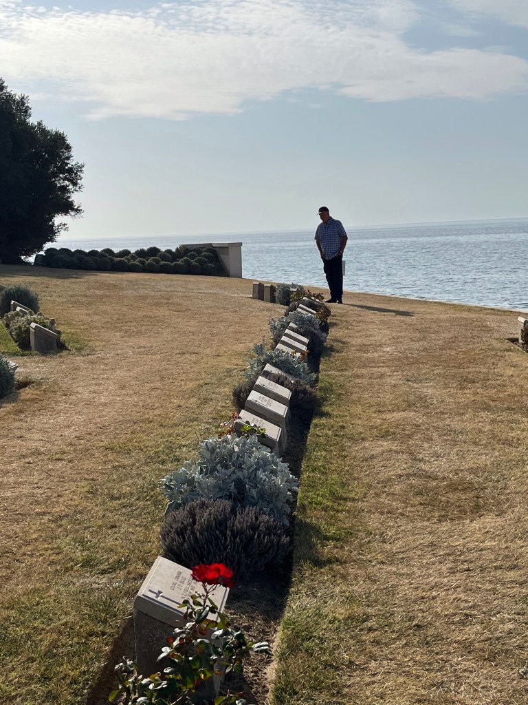 It was an early pick up this morning to travel out on a tour to Gallipoli. It was about a four hour trip in a bus and 5-6 hours looking at a lot of the sights that were of most importance to the Aust and New Zealanders and I’m writing this whole blog page in bus on our way back to Istanbul. How do I wrap up the visit and experience? I’m really not sure. The emotion is pretty overwhelming. Our first real stops were ANZAC cove and other landing spots and I really couldn’t stop the tears at one stage. Those poor buggers. The futility of it all. The mountains were not as high as the areas we had walked but they were just as steep in parts and the beach so narrow and absolutely no cover. They were all just sitting ducks with no hope of survival. The Turkish guide for our tour has been doing it for 24 years and I felt gave a very impartial presentation. He really seemed to have the attitude that it was just a shocking waste of life on both sides, that there were no real winners in the conflict even though the Turks successfully defended their land, it was just an awful tragedy every day that both sides engaged in battle. I think one of the most astounding things was that the opposing trenches were just so close to each other, a many points only about 15 mts apart, and they battled over that stretch of ground for days and weeks. At lone pine over 10,000 men battled for days on a bit of land the size of a rugby field. I walked the length and took 135 steps. There are a lot of monuments and statues for the Turks. This is the place that Ataturk showed his heroism and strategic forethought. This is the place where he came to the forefront and eventually developed the Turkish Republic. The Turks have a lot to be proud of, and of recent years have once again put in a lot of effort and money to restore areas and preserve them. According to our guide, the Aussie tourism to the area and the attendance at ANZAC services really started taking off in the late 1990s and in the last 10 years the Turks have started catching up and realising the importance and significance of the area to themselves. There were several bus loads of Turkish tourists visiting the area and several sites that are very new and under constant surveillance. There are now many cemeteries in the area and all the time they are being added to as they work out who might have died in each area.